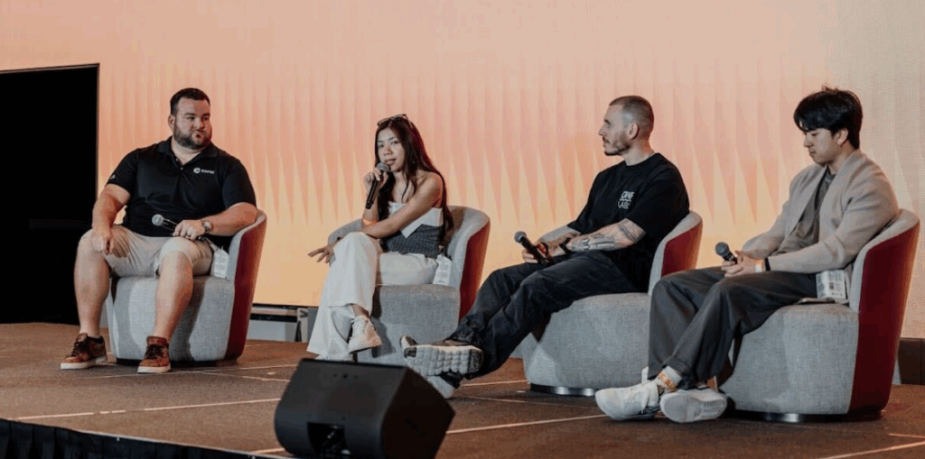 Figure 3: Joy Sim, Ecosystem Manager at Outlier Ventures (centre-left), speaking at Sonic Summit, Token2049 Singapore 2025.